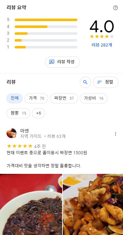 짜장면 가격이 워낙 저렴해서 다른 메뉴들은 가격대가 있어보이는데 다른 가게에 비하면 전체적인 메뉴들 가격이 저렴한 편입니다.