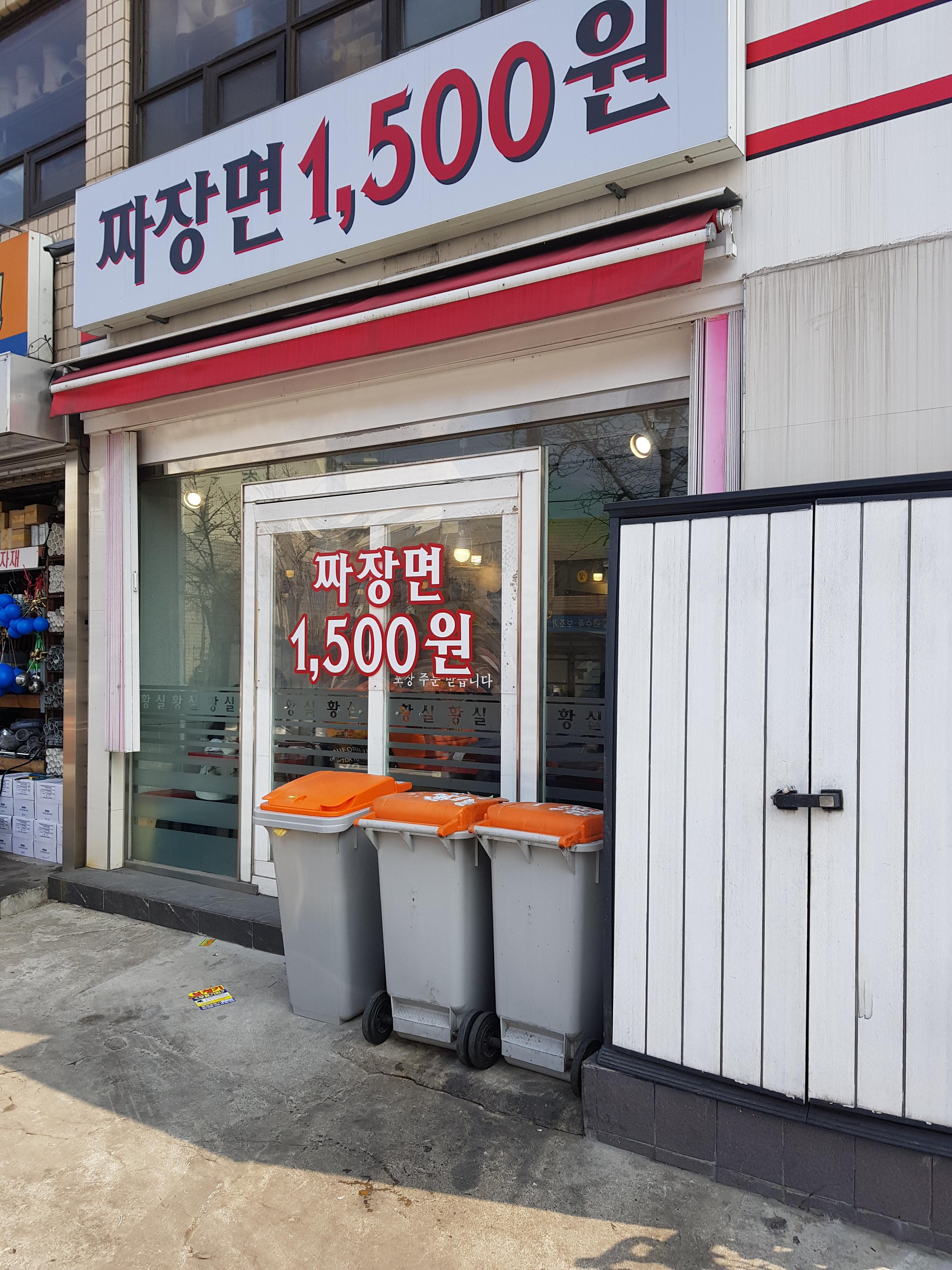 요즘 세상에 짜장면이 1,500원인 곳이 있다니... 믿기십니까?ㅎㅎ 몇 일 전에 짜장면 곱배기를 7천원에 먹었었는데 도저히 믿기지 않았습니다. 보통 이런 곳은 우리 동네에 없는데 이 곳은 다행히도 근처에 있네요. 평일 점심즈음 아들 녀석과 함께 방문했습니다. 멀리서도 보이네요... 아예 간판에 "짜장면 1,500원" 이라고 적혀 있습니다.